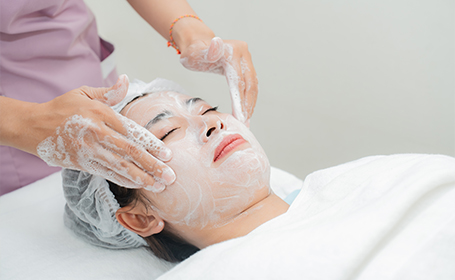 Our therapist applies a clay-based mask filled with minerals, Bentonite and Kaolin on customer's skin to absorb the extra oil, balance oil production and sooth the skin. The mask is recommended for oily & acne-prone skin. It does not cause clogged pores or any irritation.