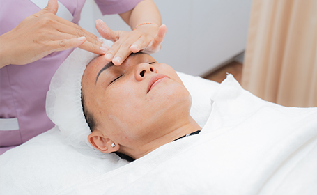 Our therapist applies moisturizer and sunscreen on customer's skin