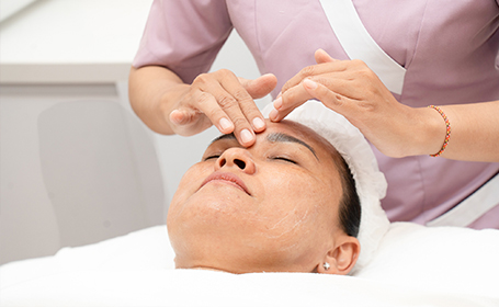 The skin will be cleansed with a gentle cleanser, taking away the dirt and extra sebum. Our facial cleanser does not contain any harsh ingredient, guaranteeing to not dry out the skin after cleansing.